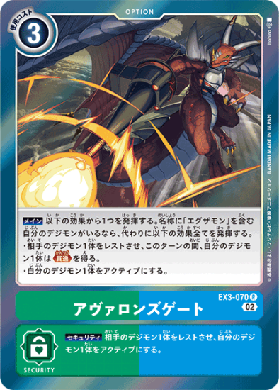 【セキュリティ】相手のデジモン1体をレストさせ、自分のデジモン1体をアクティブにする。